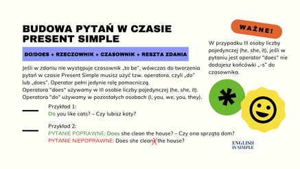 Czasownik "to be", Czasownik "have got", Czas Present Simple, Czas Present Continuous, Czas Past Simple (was, were), Czas Past Simple (did)